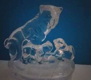 Vends figurine presse papier chat verre cristal mère avec ses petits. Dimension 10X8cm hauteur 12 cm. 887 g figurine seule.