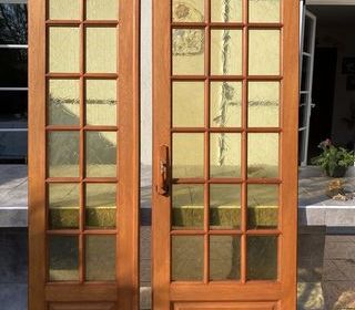 --porte joli bois très décorative -- 2 vantaux ( 51 cm. / 72 cm. ) --bois et carreaux légèrement colorés --fournie avec poignée et gonds -- hauteur de la porte 204 cm. ( st