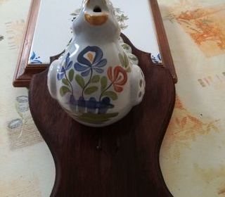 Description Poule Faience de Desvres Décor Chaumière Déco Cuisine TRES DECORATIVE POUR CUISINE (mettre ficelle pour la cuisine) 15 POT A CORNICHON 15 POUBELLE DE TABLE 15