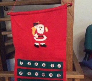 je vends un calendrier de l?avent en feutrine rouge et 2 chaussettes décoratives de Noël, très bon état, en tissu , très bon état