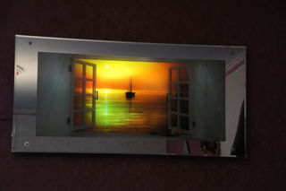 Tableau lumineux animé à effet de vagues en mode éclairage Cadre miroir sur le pourtour et profondeur de champ rendu par l'ouverture de la fenêtre Dimensions : 1m x 0.50m, épai