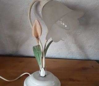 Adorable petite lampe avec structure en métal peint et abat-jour en verre. Diffuse une luminosité enveloppante, à poser dans un coin lecture, sur la table de chevet de la chambre o