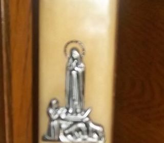 bougie des années 70 en bon état non utilisée traces de chocs hauteur 16 cm largeur 4 sur 4 cm incrusté vierge Marie en métal Paiement chèque, virement bancaire pour un envoi