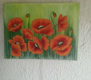 Tableau peint par une passionnée de peintures champ de coquelicots très bon état 34