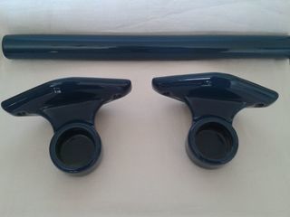 Porte-serviette vintage en porcelaine bleu pétrole Jacob Delafon années 70/80 en très bon état.Prêt à être poser au mur par 4 vis. Il comprend une barre ronde en porcelaine de 45.