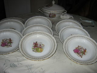 service à potage assiettes avec soupière décor liséré doré peut ètre contacté par tél: