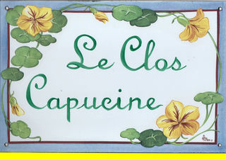 Grande Plaque totem émaillée 20X30 C.FEY LE CLOS CAPUCINE NEUF Prix : 80 € Plaques de rue émaillées décorées grand modèles Chaque plaque émaillée est unique et fabriquée