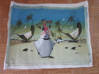 Peinture Brésil Salvador de Bahia à encadrer Acheté au Brésil Dimension peinture 68 x 49 cm Dimension totale : 76 x 60 cm Peut être envoyée en enroulant la toile Prix : 35 e