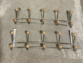 Deux Patères de porte à suspendre Excellent état. Couleur inox et accroches format boule. Très lisse pour ne pas abîmer les vêtements / serviettes....