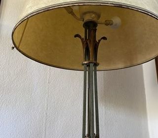En baisse. Exceptionnel INTROUVABLE sur le marché. Unique Lampadaire en bronze 2 couleurs. 3 pieds. Hauteur 1,80m. Abat jour en peau. 3 lampes d'éclairage. Prix 270 €. État neuf. À