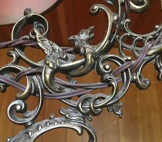 Exceptionnel PRIX EN BAISSE. Superbe plafonnier Vintege , 6 éclairages plus un central sous coupole orange. S'allume en 2 parties. 3 décors en bronze représentant guerrier avec bou