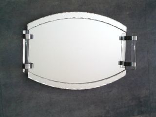 A vendre un plateau ancien en glace de forme ovoïde avec poignées de 15cms en plexiglass rond . Support d'un diamètre de 1.9cms métal servant également de patins en caoutchouc so