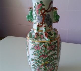 A vendre joli vase canton chinois en porcelaine du XXème . Pas signé. Il est en parfait état. Pas ébréché. Hauteur : 25cms. Diamètre du fond : 7.5cms. Diamètre du col : 8cms.