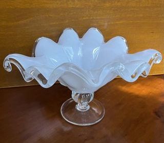 Coupe décorative en cristal blanc de Murano Largeur : 21cm Longueur : 31cm Hauteur : 16cm