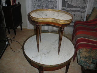 SUPER TABLES, RONDE. D 65; H 51 QUATRE PIEDS, SCULPTÉS, BORDURE AJOURÉE, COULEUR BRONZE.