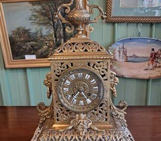 Pendule en bronze Napoléon III très belle et richement décorée dans l'ensemble, orné de deux visages sur les côtés, le mouvement a été révisé il fonctionne, en très bon état d'orig