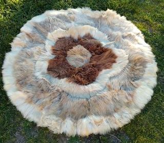 jolie tapis de vrai peau de chèvre diamètre 1m28 marron et blanc 30 e