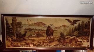 Un tableau représentant des bêtes sauvages, dimensions 180 cm de long et 70 cm de haut, encadrement en bois, prix 100 euros. Contact uniquement par téléphone