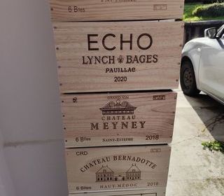Je vends 20 caisses en bois de vin vides plus des plaques en bois decoratives