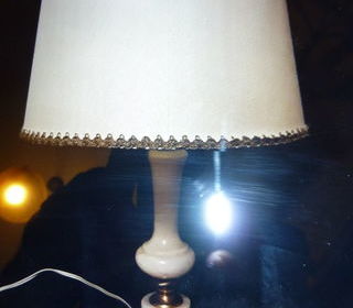 LAMPE A POSER EN BON ETAT . PIED EN ALBATRE. HAUTEUR 39 CM. A RETIRER SUR PLACE. REGLEMENT EN ESPECES.