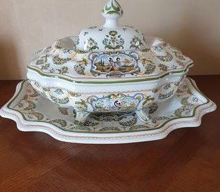 GRANDE SOUPIERE OU LEGUMIER EN FAIENCE LALLIER A MOUSTIERS Grande soupière ou légumier en faïence LALLIER à Moustiers en parfait état. Décor Moustiers fait main. Dimensio