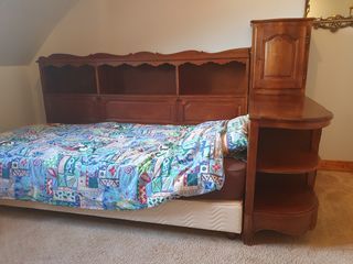 Angle Lit Cosy bois chêne massif Pour literie 190 cm x 90 cm Démontable 3 parties : ? Coffre de rangement latéral avec porte sur charnières, +étagères Largeur 190 cm Profond