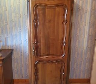 Armoire Bonnetière style Louis XV Merisier massif Corniche chapeau de gendarme 1 porte, 5 étagères réglables sur crémaillère bois, serrure à clef Excellent état Dimens