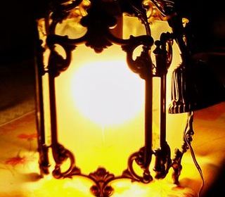 Lustre en bronze doré et verre opaque avec dessin incrusté. Pour couloir ou autre. Bon état.