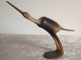 OISEAU HÉRON EN CORNE ART DECO EN TRÈS BON ÉTAT HAUTEUR DE 14,5 cm x LONGUEUR DE 21 cm x LARGEUR DE 4,5 cm (BASE) POUR LE RÈGLEMENT, JE FONCTIONNE UNIQUEMENT COMME SUIT :