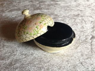 BOITE ORIGINALE POUR BIJOUX...EN BOIS ENTIÈREMENT PEINTE À LA MAIN AVEC UNE PETITE SURPRENANTE PARTICULARITÉ, CETTE PETITE POINTE AU NIVEAU DU BOIS SIGNALANT L'ENDROIT D'OUVERTURE
