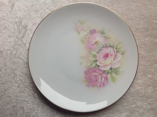 ASSIETTE À DESSERT LIMOGES DÉCOR PORCELAINE de SOLOGNE ASSIETTE LIMOGES PORCELAINE DE SOLOGNE DÉCORÉE DE ROSES PASTELS. FINITION LISERÉ DORÉ DÉCOR RÉSISTANT AU LAVE-VAISS