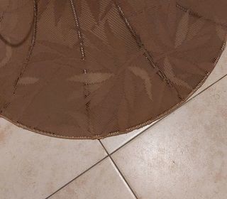 En forme de corolle, diamètre haut 20 cm, diamètre bas 65 cm, hauteur 27 cm