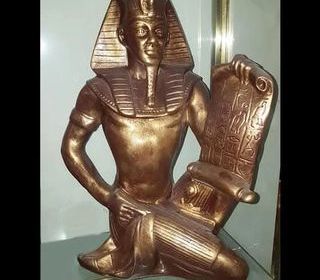 !! ANNONCE visible, donc DISPONIBLE !! Grande Statue égyptienne Égypte Ramsès Pharaon Toutankhamon égyptien assis avec parchemin En stuc résine (Matériau plâtre imitant le marb