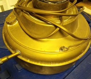 Ancien réchaud alcool modifier en lampe(équipé douille).....10€ 1Pelle bronze pour cheminée !! bon état ...................... 10€ 1 Pendule mécanique Albâtre mécani