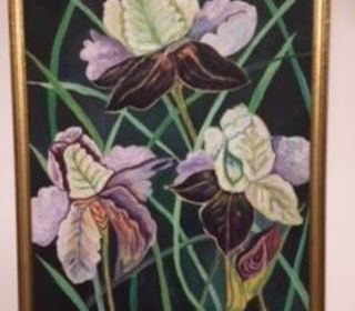 tableau représentant une nature morte tissu tendu sur bois très tendance original dimensions: 85x67cm très bon état vintage 1/2 point compté remettre en main propre uni