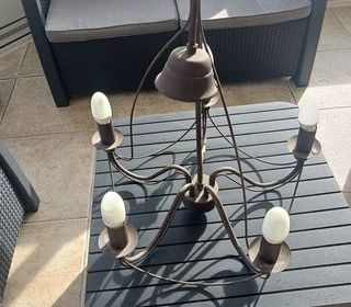vends un lustre gauthique à 2 étages sans les ampoules (en fer rouillé )