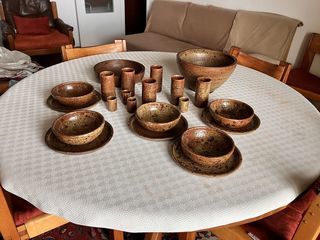 Service artisanal en terre cuite vernissée 23 pièces. (A récupérer sur place)