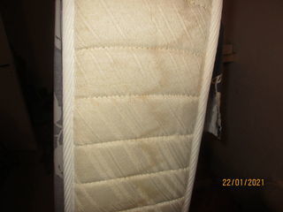 vends un sommier à lattes avec le matelas de 1m40 (le matelas taché de coca cola) il manque les pieds en bois état satisfaisant