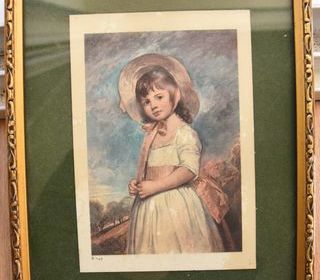 Cadre doré avec jolie petite fille. 25.5 cm. Tbe. 20 euros - Cadre doré avec jolie petite fille. - Cadre bois et verre. - Fond couleur vert. - Dimensions: 25.5 cm x 19.5 cm