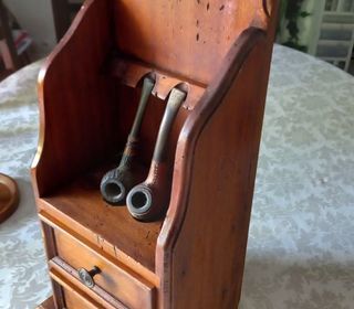 Porte pipes mural en bois rustique, très bon état. emplacements, 2 tiroirs