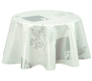 Nappe toile cirée 135 cm pour 4 personnes, marque Habitable, confectionnée en France, couleur fleur de sel, c'est-à-dire des tons beige très clair, gris et crème, nacrés. L'emballa