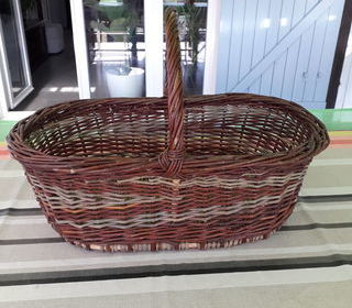 Panier en osier grand format deux couleurs marron et vert amande longueur 50 cm largeur 30 cm hauteur 18 cm en bon état