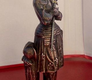 Jeanne d'Arc Statuette bronze début 1900 signée M.Reberg d'après la princesse d'Orléans HT 15 cm , socle 5cm x 5cm poids : 400 grs prix: 85 € + envoi