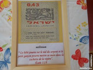 "tableau dimensions 240X326 mm représentant le millénium : l'enfant et le serpent avec versets bibliques correspondants il y a 10 thèmes différents Envoi possible pos
