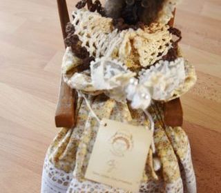 Poupée avec une pomme séchée de San José. Apple Gran. 30 euros - Poupée . BJ - Assise sur Rocking chair en bois. - Vêtements en tissus,dentelles et perles sur aiguilles à tric