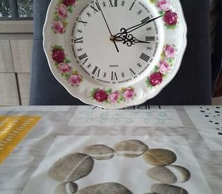 Pendule/assiette murale quartz vintage décor floral