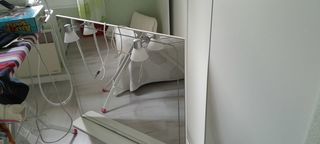 Vend miroir de salle de bain avec tablette et éclairage 1metre de largeur et 0.87m de hauteur sur bois blanc
