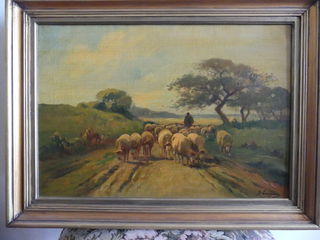 Brigitte LANGEVIN (XIX-XXe) "Scène pastorale" huile sur toile 37 x 55 cm cadre bois doré