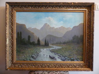Lucien Jules GROS (1886-1942). Peintre béarnais "Le Pic du Midi d'Ossau" huile sur toile 60 x 81 cm cadre d'époque en bois stuqué doré
