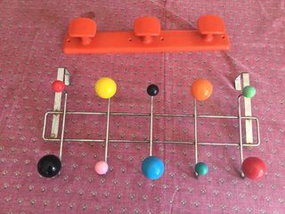 Lot de 2 porte manteaux vintage soit - 1 porte manteau de marque SYLA modèle 6056 Made in France Porte manteau des années 60/70 de couleur orange à 3 patères Dimensions : Long